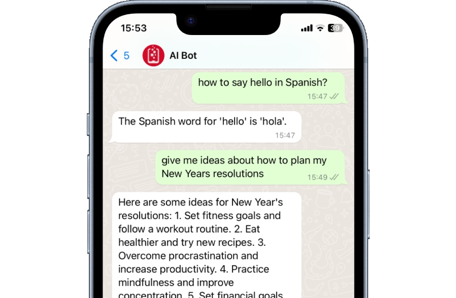 Scan the QR Code or click on the button and it will open your WhatsApp. Then start a chat with our AI bot.