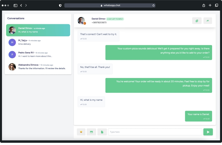 This platform supports document and image sharing, quick replies, and rich templates. It features both manual and automated responses, triggered intelligently by client messages, optimizing customer engagement and streamlining communications efficiently.
